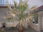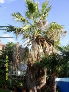 een piepkleine foto van een filifera in Lyon na -10C en enkele dagen duurvorst zonder bescherming: