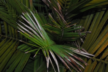 Ik heb er vandaag eens de schaar ingezet. De groei is nog steeds niet je dat. Nu is de situatie als volgt: de binnenste speren zijn open en groeien, ze zijn wel merkelijk kleiner dan de oude bladeren. De bladeren die er half uitsteken willen niet groeien en worden stilaan geel hoewel ze geeneens volgroeid zijn. Wat heb ik dus gedaan: de onderste bladeren zagen er echt slordig uit doordat die nog op de grond "lagen" Ze waren wel nog groenachtig. Ik heb de onderste bladeren de palm rond allemaal weg gedaan. Ziet er veel netter uit nu. Ik hoop ook dat dat zo wat energie gespaard is. Over de prognoses: leeft nog want de binnenste speren groeien en zitten muurvast. De halve bladeren gaan volgens mij vroegtijdig bruin worden. Ik hoop dat dat geen misvormingen oplevert. De mini bladeren die de nieuwe speren zijn is volgens mij verborgen beschadiging van toen hij in pot buiten op de koer van de verkoper stond met zwarte vorst. Moet er gewoon uitgroeien denk ik.