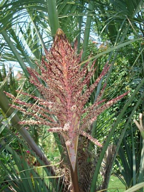 en eentje van een van de bloemen van men Butia. gisterenavond waren ze nog allemaal gesloten maar zag daarnet dat een bloemkolf is opengesprongen :)