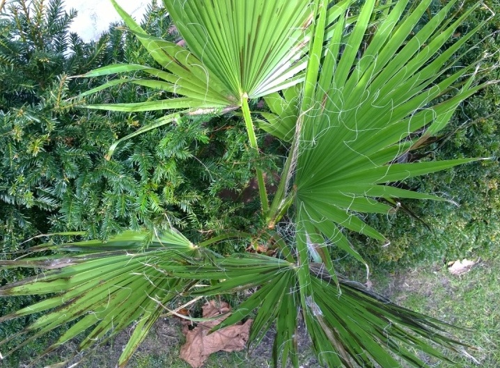 hier staat een washingtonia in de volle grond, natuurlijk met wat bedekking tegen vorst maar als ik kijk betwijfel ik het of deze het gaat halen.