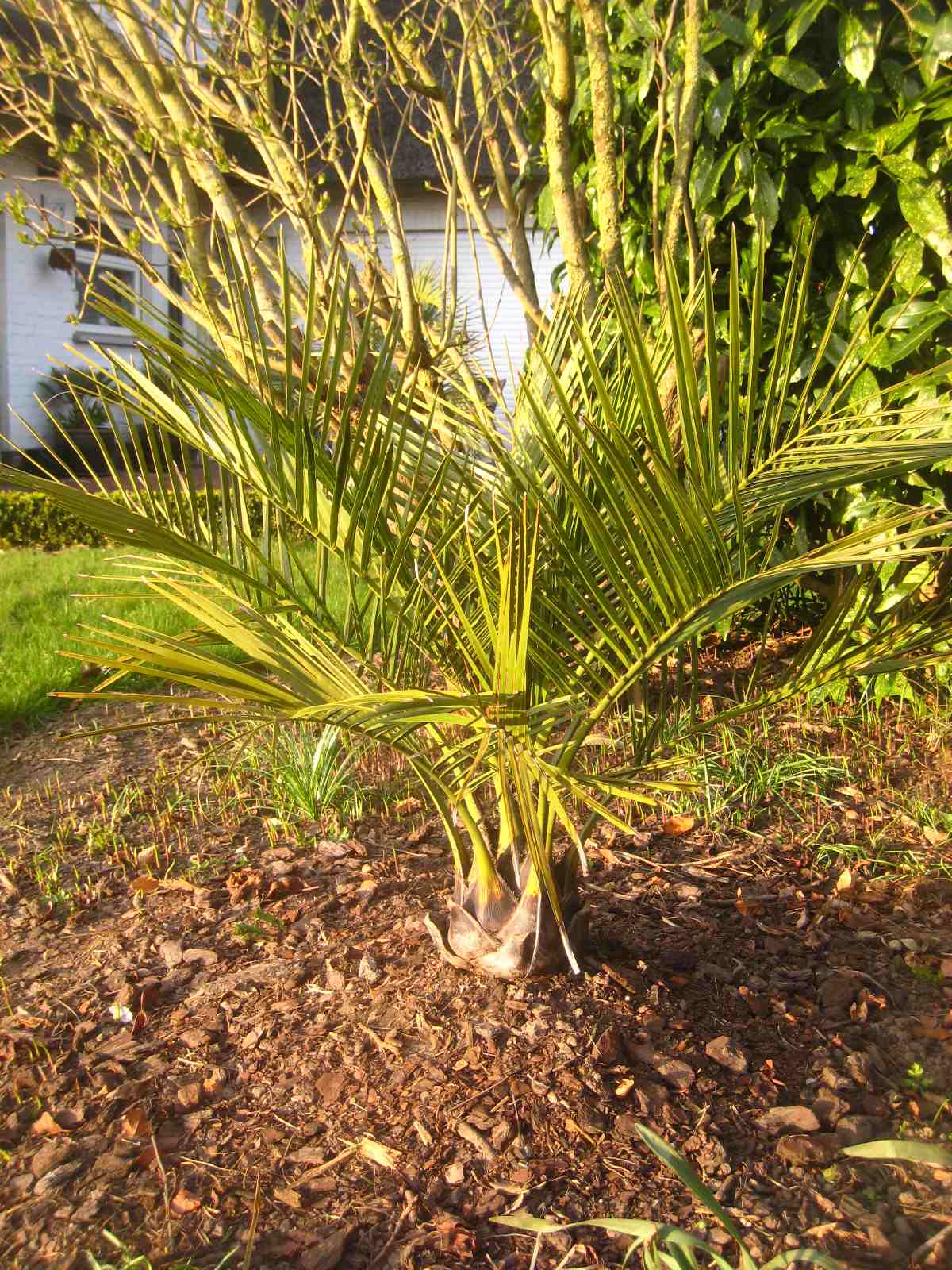 Ik had 2 bijna identieke Jubaea's in de volle grond staan. Ze stonden er al meerdere jaren en hadden zelfs de strenge winter van 3 jaar geleden overleefd. Hoewel ze er beiden voor de winter nog kerngezond uitzagen vrees ik nu toch dat één van de twee dood is. Het andere exemplaar ziet er nog prima uit en is al terug aan de groei.