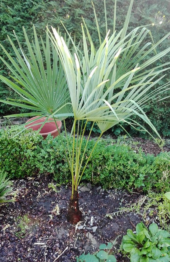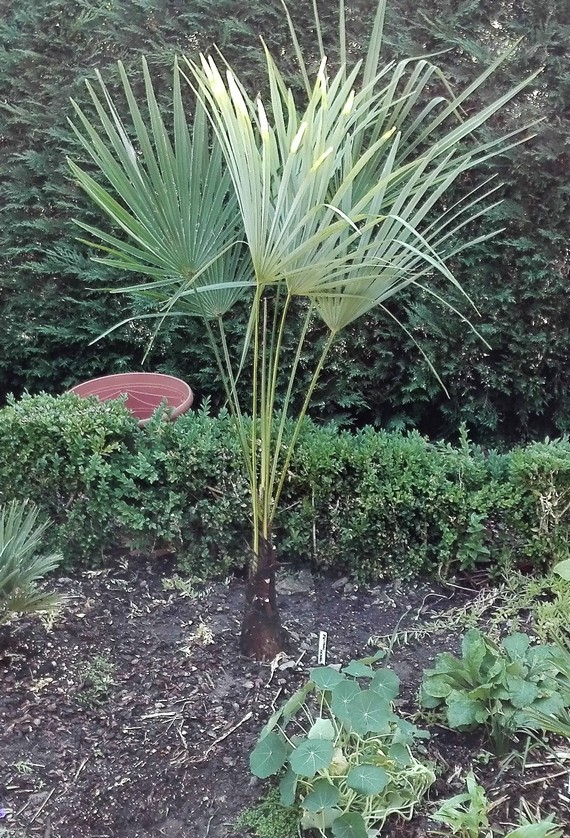 Is ondertussen nog weinig gegroeid moet ik zeggen en is daarmee de traagste Trachy in de tuin: