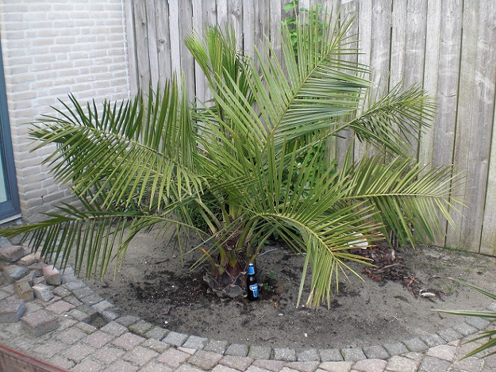 het was wel even een karwei om hem in de grond te krijgen het is nog een rommeltje om de palm