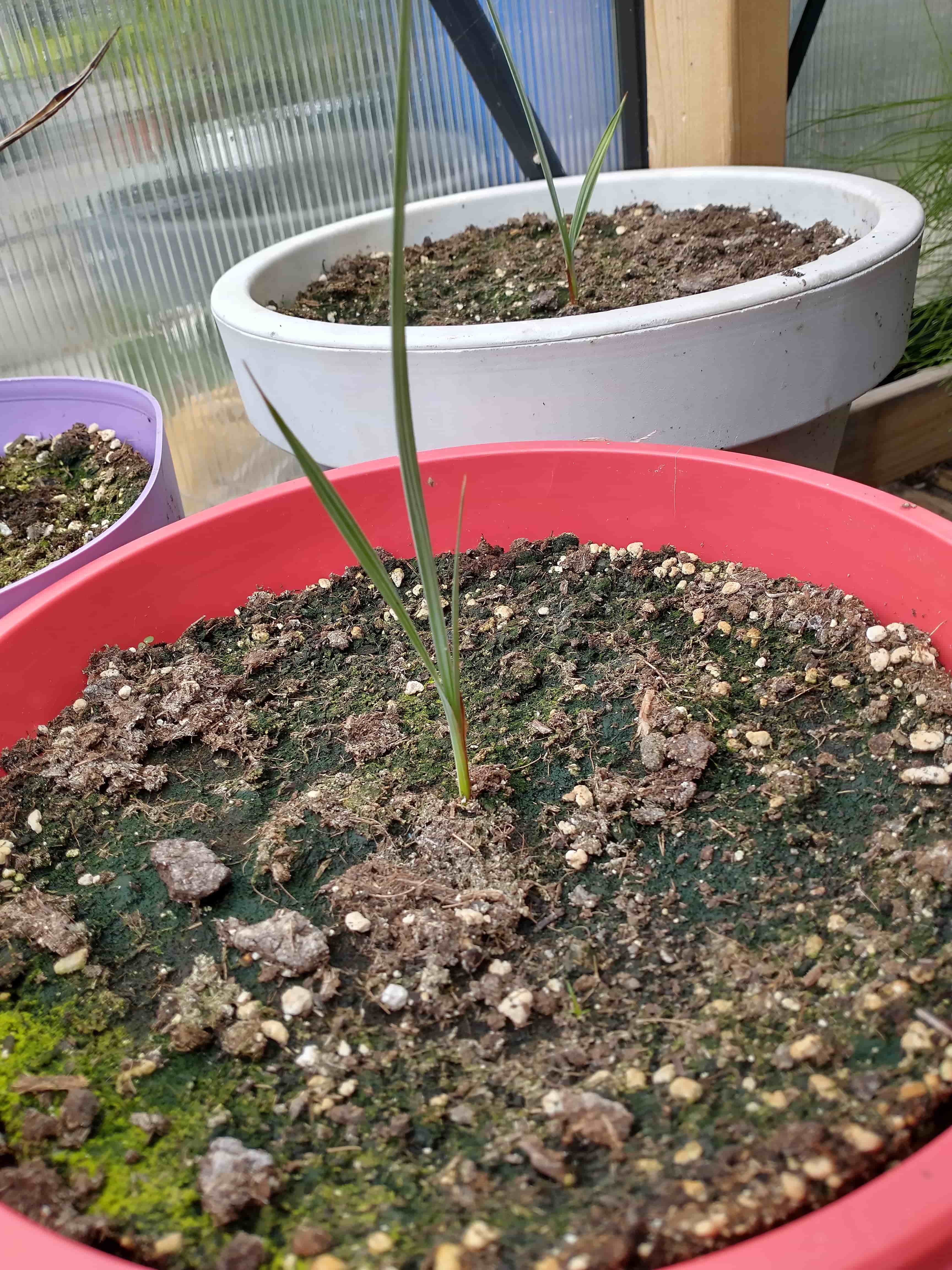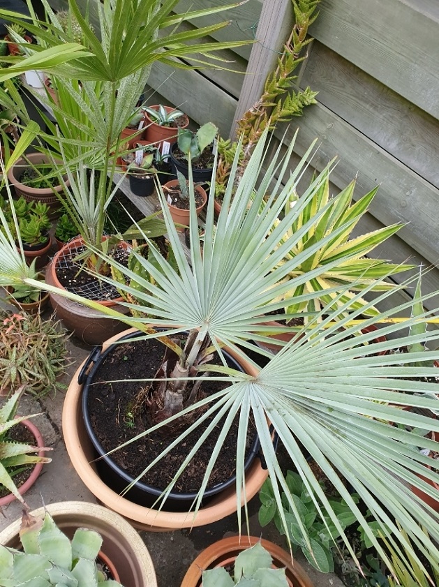 refs. 'La Connaissance des Palmiers' - 12 `å -15°C selon des conditions climatiques (= mediterraan klimaat). 'Palmeras' (Spanje) vermeldt ook als grenswaarde -15°C. Deze minimumtemperaturen zijn gebaseerd op situaties die zich in Zuid Europa zelden voordoen. Brahea armata gaat hier volgende maand de kas in. Ervaringen uit het verleden met deze palm heeft me geleerd dat het aanzien er niet op vooruit gaat onder de invloed van regens.