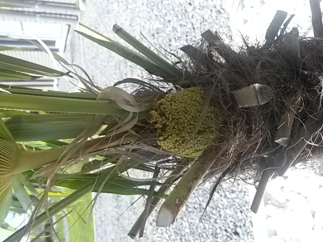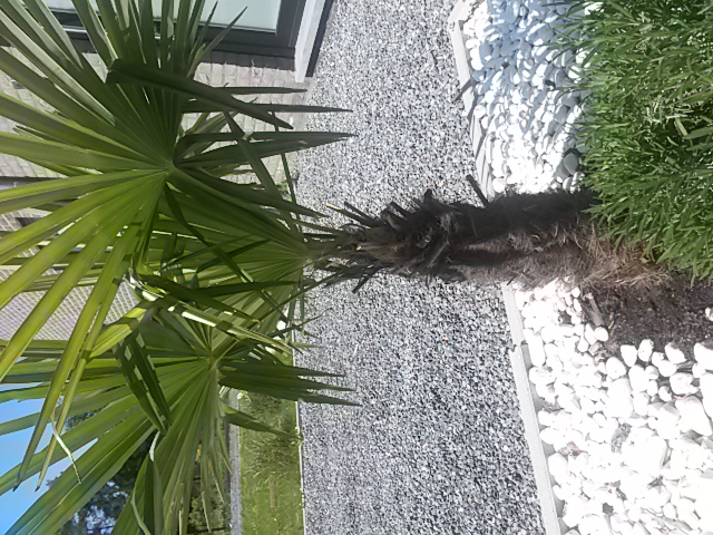 Hoi Phildre, zo te zien zin ze toch een jaar of 6-8, Van af zes jaar heb je kans op bloei, dus dat zit wel goed. Wel is het zo dat de palm het naar de zin heeft daar hij pas 2 jaar in de volle grond staat.