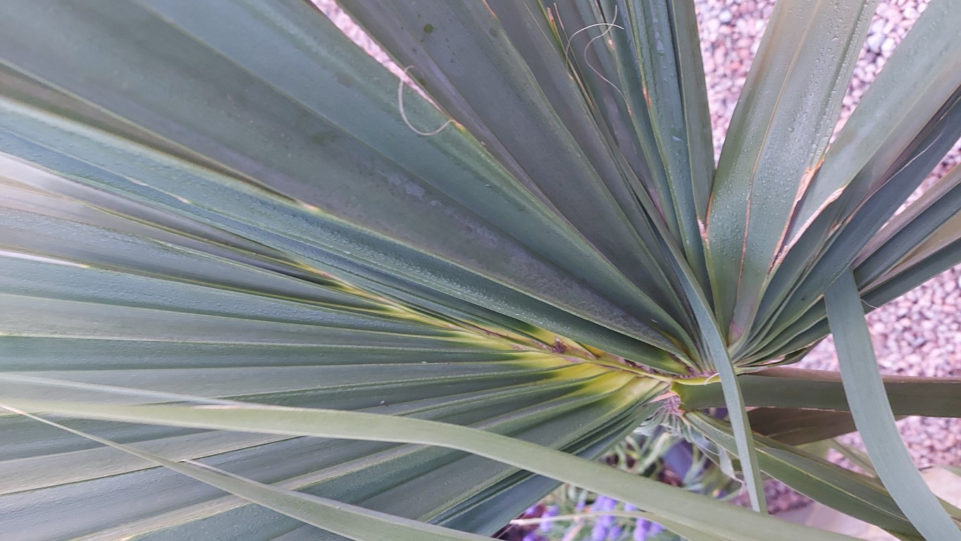 Sabal is echt het schoolvoorbeeld hiervoor. Vaak 'vouwt' het blad ook op de costa, of komt er een lange v split in het blad.