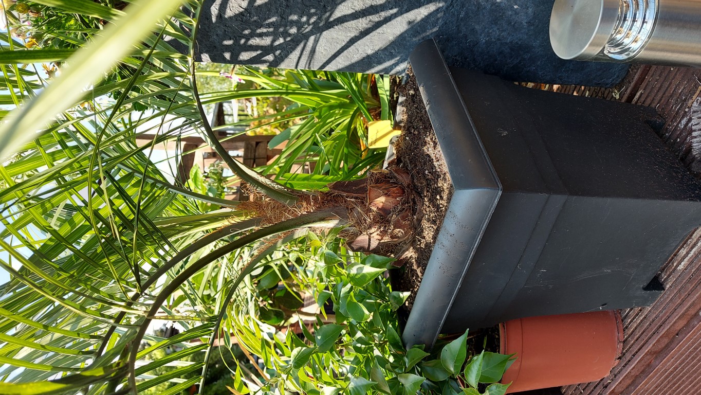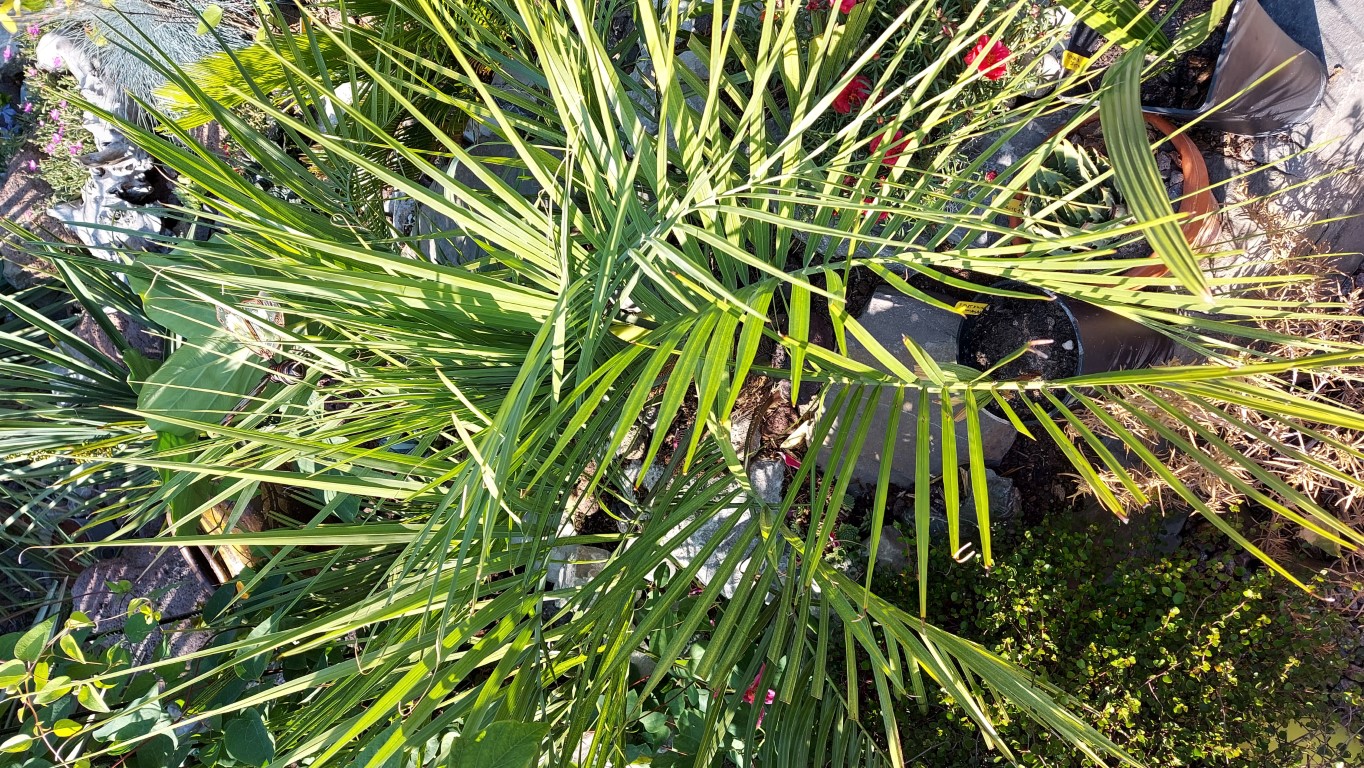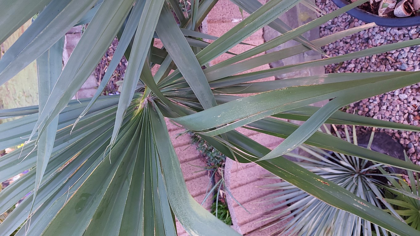 Foto geeft mijn 2 Sabals minor. De kleinere is al van 2010 of zo en heeft al eens gebloeid.