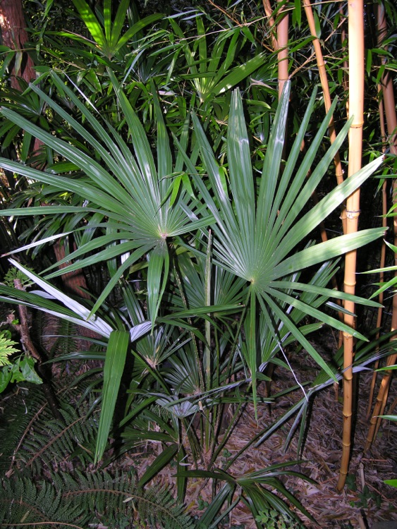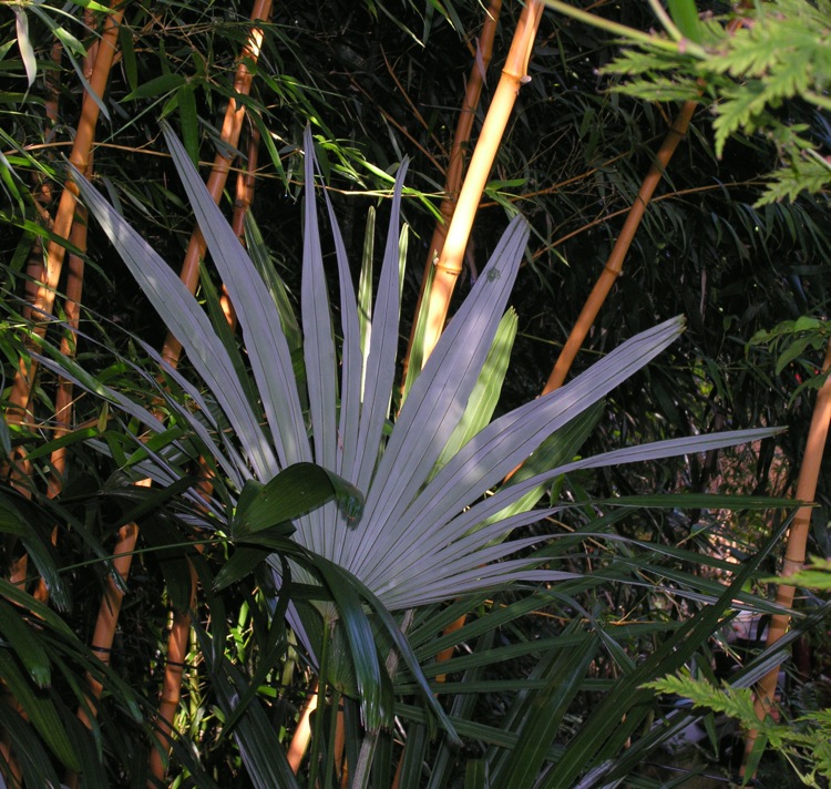 Ook hier groeit Trachycarpus in vrij diepe schaduw met alleen de ochtendzon. Ik heb hier meer exemplaren van dit geslacht in de schaduw van bamboe geplant. Voor de groei lijkt het niet veel uit te maken, hooguit worden de bladstelen wat langgerekter. Vergeleken bij de echte zonaanbidders is de behoefte aan zon bij Trachycarpus kennelijk minder groot.