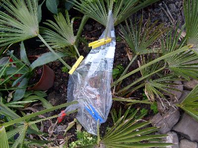 Idd, je moet de palm nu zeker beschermen tegen regen en alles wat nat isVoornamelijk dat gat ja.