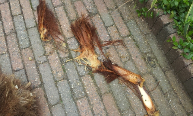 Ik kon zo de hele binnenkant van de palm omhoog trekken, de geur was vreselijk.