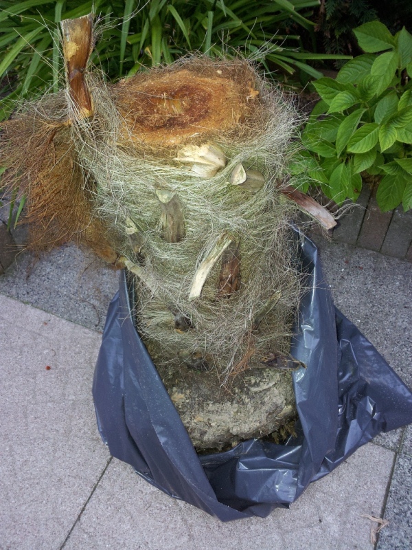 Het nadeel van afzagen is dat je een misvorming krijgt in de stam. Ik heb hier helaas geen voorbeeld van doormiddel van een foto maar je kunt het goed zien hoor. Op die bepaalde plek lijkt het of er ineens een dunnere stam uit een dikkere stam komt, dus met een soort trapje en ook op die plaats zijn veel meer oude bladstelen die wat door elkaar zitten. Dit komt omdat de bovenkant van de stam open barst als het ware. Ik heb al geregelt eens palmen gezien in tuincentra waarbij ik zag dat ze jaren geleden hersteld zijn van speerrot, die laat ik dus staan omdat het niet zo mooi is natuurlijk maar ook omdat ik dan al weet dat het een zwakker exemplaar is.