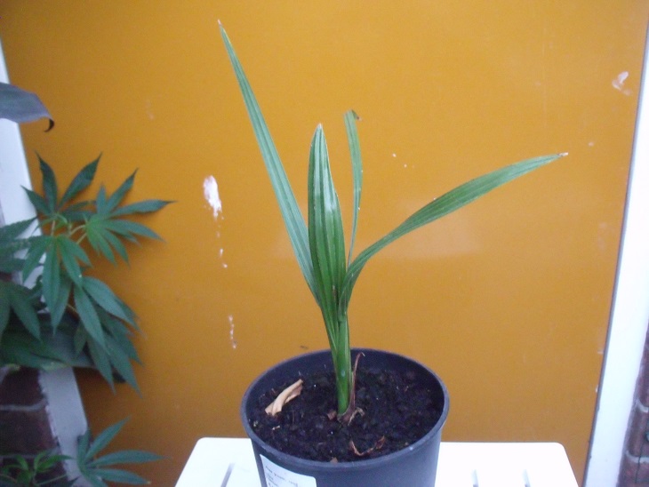 Mijn zelf gezaaide Phoenix dactylifera vormt na 3 maand zijn eerste speer