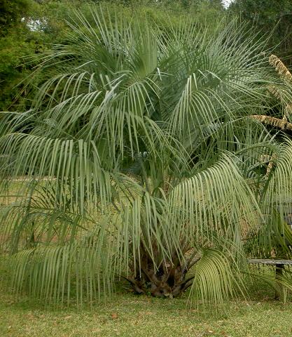 Bovendien is de naamgeving onlang veranderd. Wat ik dacht dat een Butia capitata was, is blijkbaar een Butia odorata 'Lax Leaf', zo blijkt een een reactie van een palmliefhebber op het EPS-forum. Google geeft wat hits, maar niet veel. Volgens hem is het een zeldzame verschijning. Ik ben benieuwd wat de kenners er van zouden maken. Kent iemand die variatie? of ziet iemand er een andere soort in? De eerste drie foto's zijn van mijn exemplaar. De vierde is een foto van hoe ze er uit gaan zien naarmate ze groter worden.