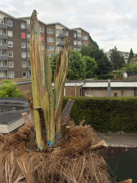 In het voorjaar van 2012 zag het er zeer slecht uit voor mijn mooie Trachy. Speerrot..... Op tijd van een maand kon ik de hele speer eruit trekken en wat overbleef was een kommetje stinkende prut. Na het lezen van al jullie overlevingsstrategieën (!) heb ik in alle hysterie alles tegenlijk toegepast