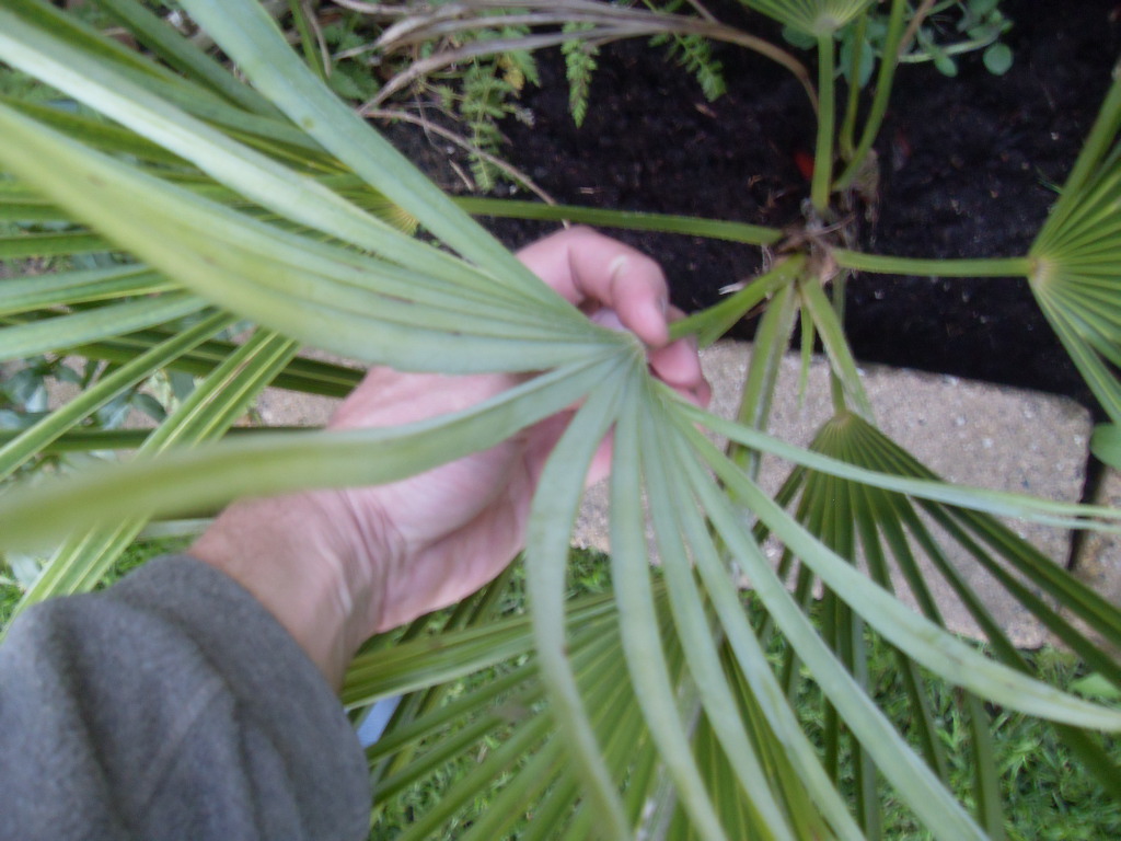 Ik heb mijn exemplaar vorig jaar in de tuin gezet. Als kuipplant vind ik deze palm minder geslaagd. Deze heb ik eens als zaailing meegenomen uit Panningen waar ze door Herbert werden gepromoot. De oreophylus die ik via Cemunnos had betrokken leken als 2 druppels op deze manipur.