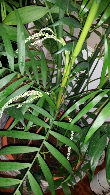 De vraag komt eigenlijk door dat ik nu bloei heb in mijn Chamaedorea seifrizii en mijn