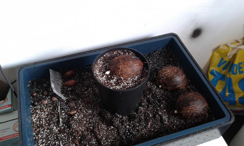 Omdat ook bij mij de cocosnootjes weer begonnen te kriebelen, besloot ik niet zo lang geleden om er een paar te halen bij een toko en deze te laten kiemen.