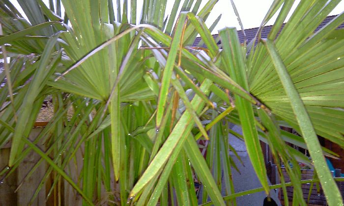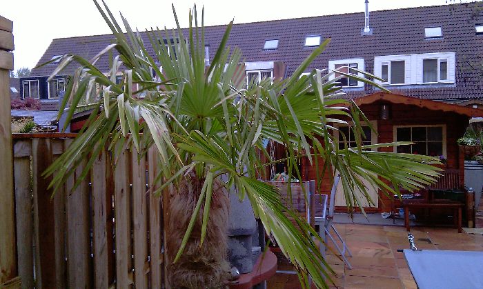 Vorig jaar heb ik een trachycarpus fortunei gekocht die er vanaf het begin al belabberd uitzag. Direct heb ik de leverancier benaderd en die zei dat het kwam doordat de palmen samengebonden getransporteerd zijn, en dat ik de palm de tijd moet geven te herstellen. Hier was ik dus echt niet blij mee, maar aangezien de palm van ver kwam en het gedoe met dat zware ding in de grond zetten etc. heb ik het zo maar gelaten.