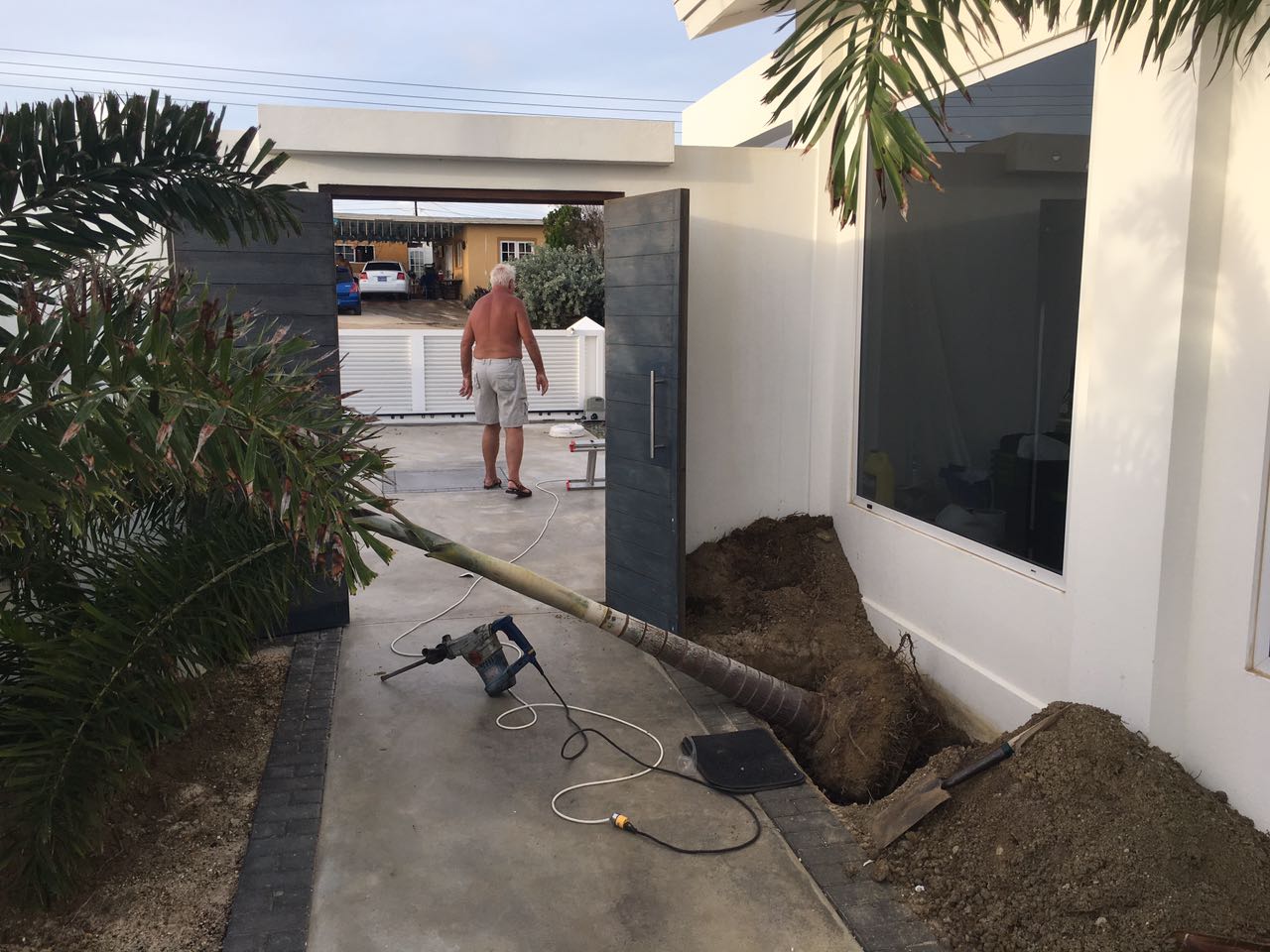 Hebben de bomen voor het huis terug gezet met verse aarde.