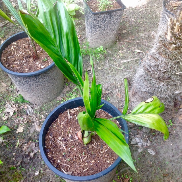 Mijn nieuwste theorie is dat hij alle energie naar het wortelen heeft verschoven en naar beneden aan groeien is momenteel. Ik verwacht altijd nog dat het goedkomt en dat er een mooie Chamaerops humilis te voorschijn gaat komen.