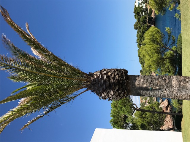 Momenteel lekker van de zon aan het genieten op Mallorca en prachtige exemplaren gezien van diverse palmbomen. Wat mij opvalt is dat bij veel Canariensis palmen iets in de stam is gezet (een groen tooltje)