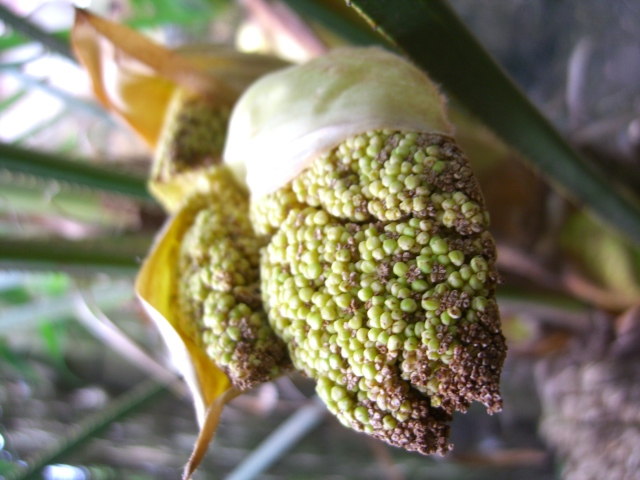 het zijn dus mannelijke bloemen.heb een andere trachy die ook in bloei komt.en het verschil is heel duidelijk. foto 1 zijn de mannelijke bloemen.zijn veel dikker en robuster.en foto 2,3 zijn vrouwelijke bloemen.zijn ook anders van kleur.de man. zijn geel en de vrouwelijke naar de groene kant en veel fijner.en als je aan de mannelijke bloemen schuddert komt er stuifmeel vrij.mvg shorty