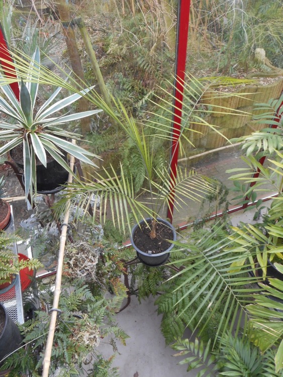 Er stond o.a. Arenga (micrantha, engleri, pinnata), meerdere Phoenix soorten, Washingtonia, Musella lasiocarpa, Strelitzia, oleander, kumquat, Calamondino, L. nitida, L. decipiens, gembers, Draco, Laurier, Butiagrus, Diverse soorten Chamaedorea (hooperiana, elegans, warcewiczi, microspadix, radicalis).