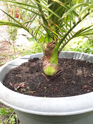 draco schreef:De palm mag best nog wat dieper staan, dat bevordert het uitbotten van nieuwe wortels uit de stambasis. Om te stabiliseren kun je ter ondersteuning enkele maaskeien er omheen leggen.