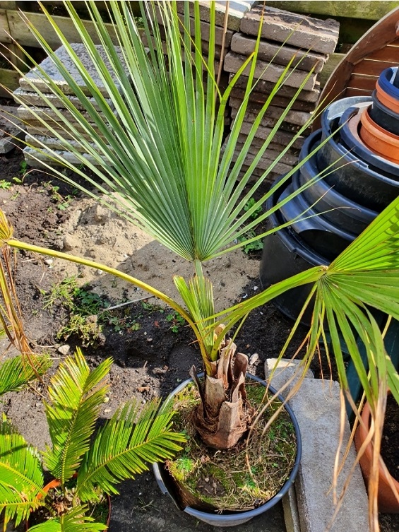 Plan was om in de volle grond te planten, maar na wat speurwerk hier dan toch maar besloten dat niet te doen, i.v.m. de vorstgevoeligheid. Had 'm al uit z'n pot.. één en al wortel, na zoveel jaren in dezelfde pot. Raad graag. Wat kan ik hier het beste mee?? Wat is de beste kans om dit een mooie sterke en goedgroeiende palm te maken? Alle tips welkom!