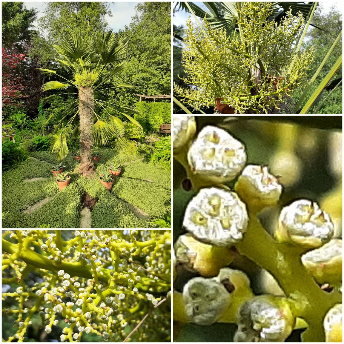 Mijn Trachycarpus fortunei 'Wagnerianus' bloeit bij mij voor het eerst.