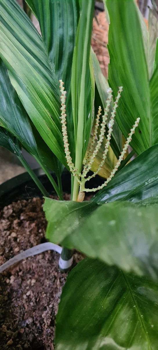 Traditioneel bloeien eigenlijk de meeste Chamaedorea soorten bij mij in de winter (binnenshuis op een redelijk droog watergeef regime), maar deze had ik ff niet zien aankomen.