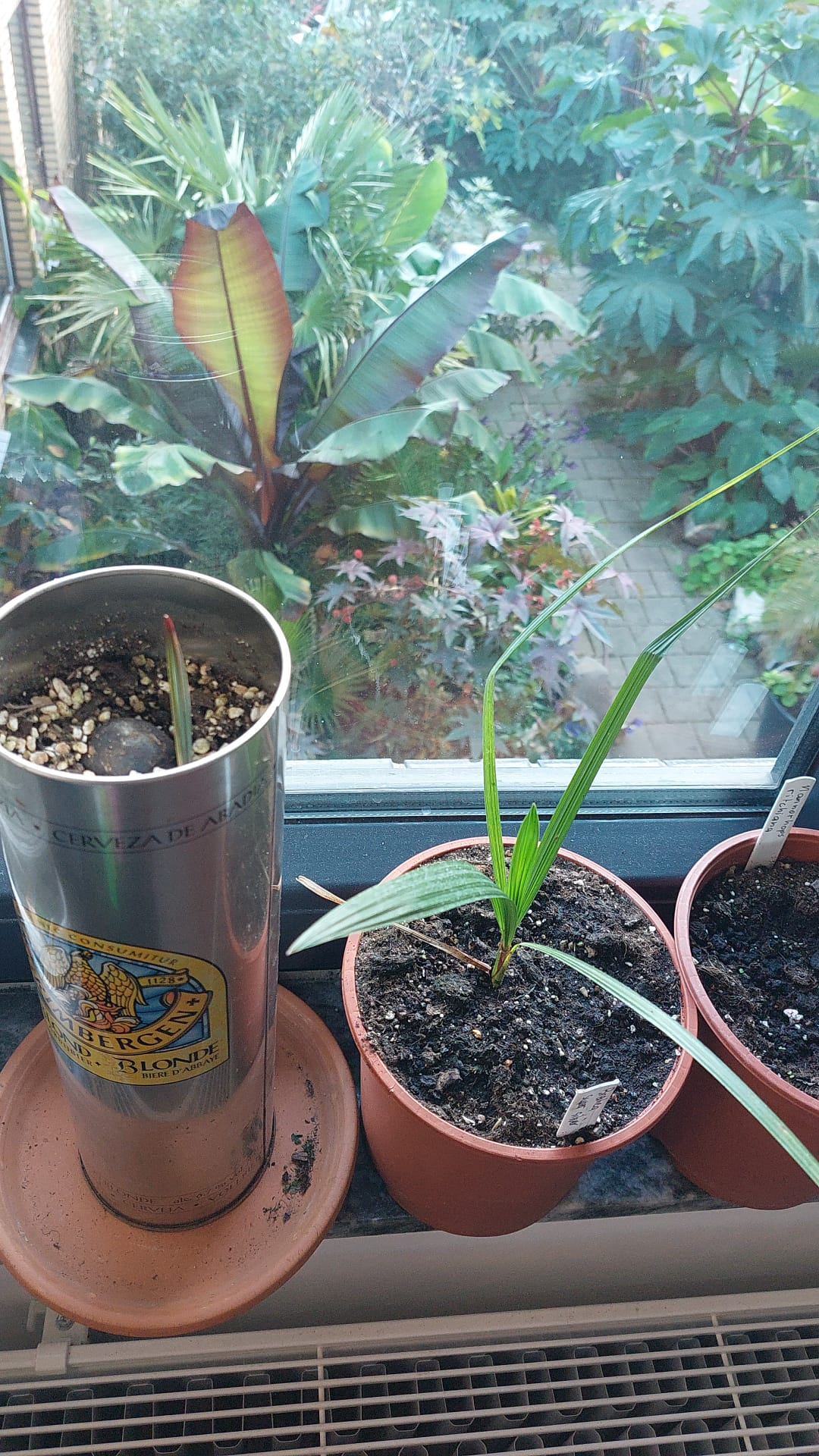 Ik heb een Bismarckia nobilis in een metaal blik gezaaid. Normaal plant ik zaailingen om zodra ze 2 blaadjes hebben maar aangezien Bismarckia's gevoelig zijn voor wortelverstoring vroeg ik mij af of het beter is om hem zo lang mogelijk in pot te houden of toch om te planten nu het blik nog niet gevuld is met wortels?