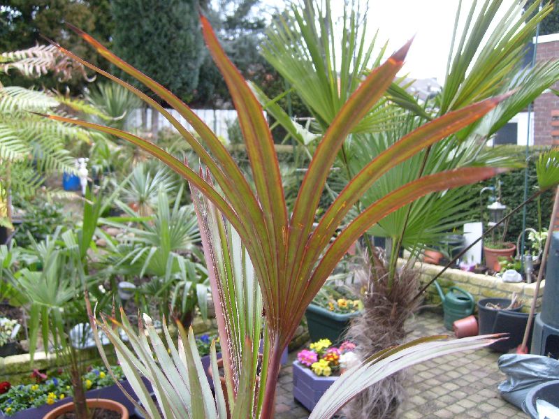 Wel dacht ik dat er een tropische palmsoort was die ook eerst rode bladeren heeft die later groen kleuren?