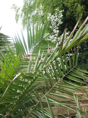 Nee, dat heb ik niet gedaan. Neem aan dat zo n exemplaar wel tegen de zon kan. Als ik hem deze week buiten laat staan, kan dit dan kwaad met de goede weersverwachtingen. Niet zo makkelijk te verplaatsen zo n palm.