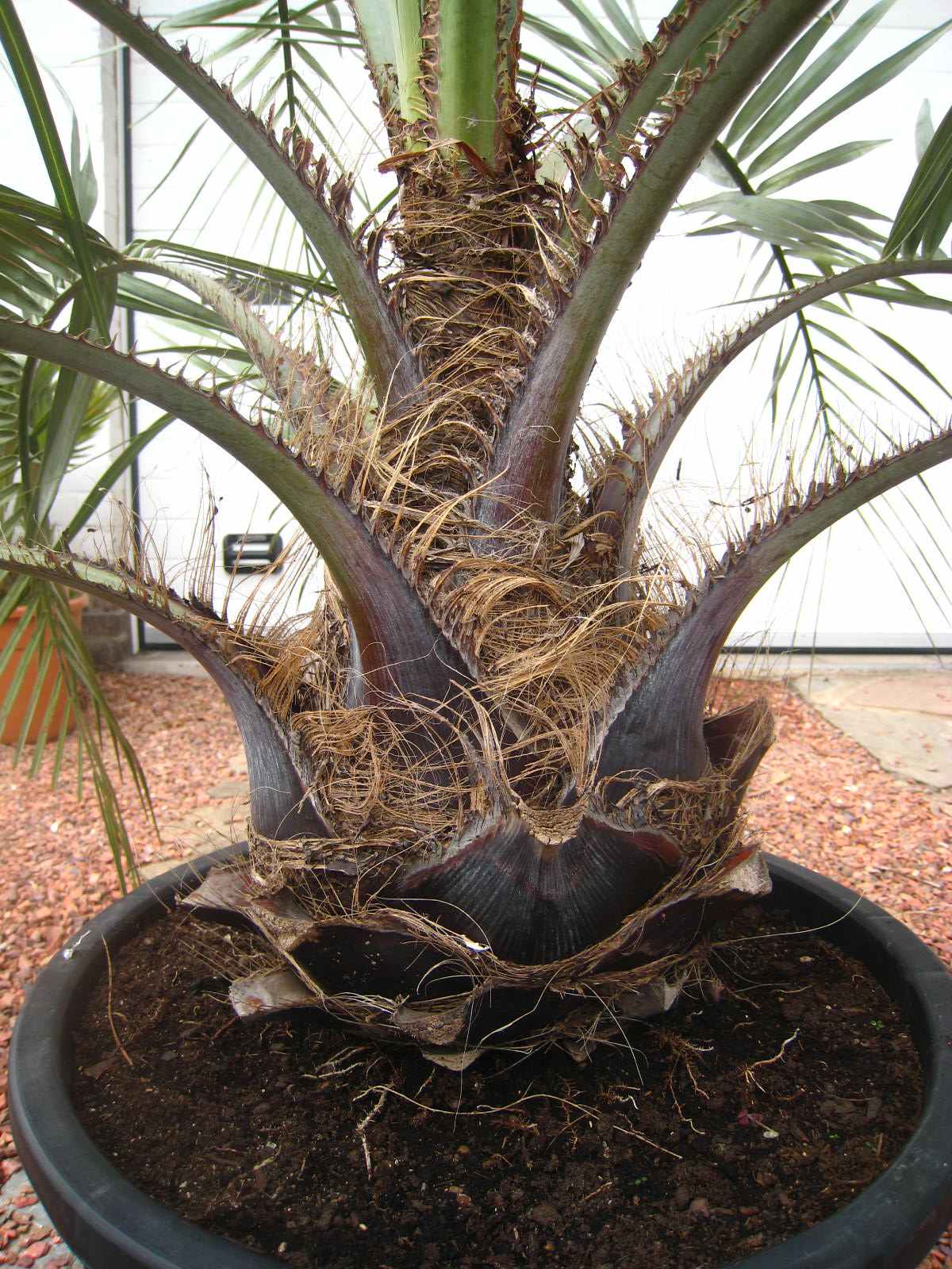 Mijn butia capitata staat vanaf dit jaar in de volle grond, de pot werd te groot en te zwaar en na vorig jaar ging hij langzaam achteruit. Ik denk door een gebrek aan mest of mineralen daarom uitgeplant, wordt wel beschermd in de winter door een klimaatdoek dat ik heb gezien bij iemand anders hier in Waalwijk.
