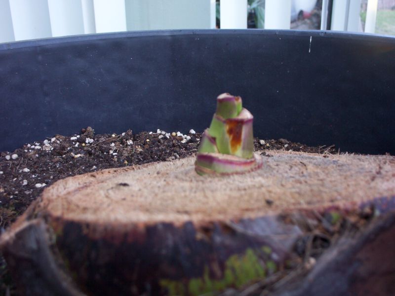 Ik heb hem nog niet willen uitgraven omdat hij nog steeds groen ziet. Ik geef hem nog de hele zomer de kans, daarna gaat hij er uit om plaats te maken voor iets anders (dan wordt het een jubaea chilensis denk ik).