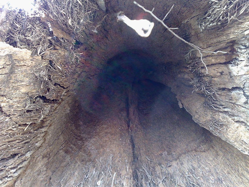 Fascinerend! Ongeloofelijk dat hij er nog staat... weet je ook de oorzaak van het gat? Brand? Bliksem misschien?