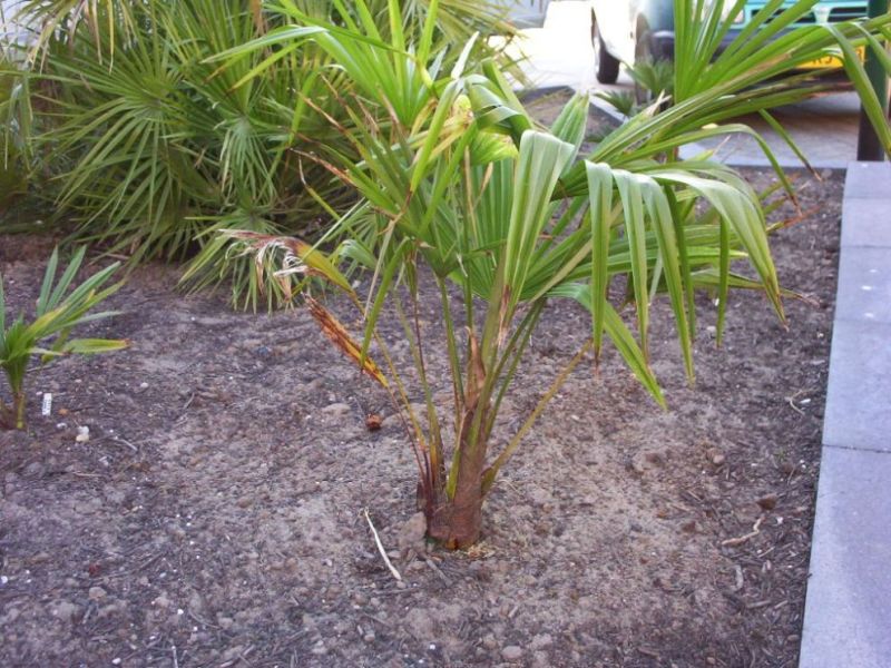 Na die winter heb ik de speer kunnen trekken en alle bladeren waren verbrand. Tot mijn grote verbazing kwam de palm er weer bovenop en kreeg 3 nieuwe bladeren.