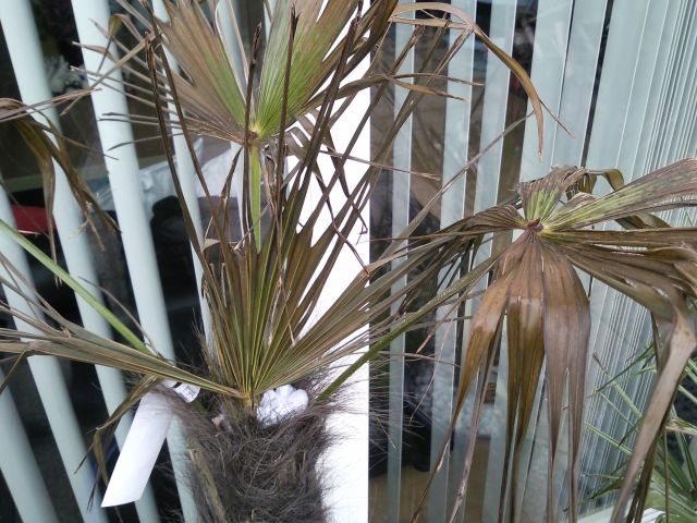 Hier het palmpje wat bruine bladeren heeft maar speer nog vast zit!