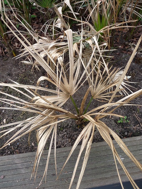 Alle chaemerops humillis hebben speerrot en zijn allemaal volledig bruin. Ik heb er 3 uit de tuin gehaald, toen ik er aan trok bleek de hele plant al te rotten, er staan er nu nog 2 beide ook volledig bruin en speerrot.