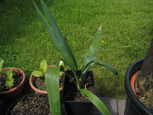 vorig jaar maart hebt ik deze soort bij Christophe gekocht hij begint nu met gedeelde bladeren en voor een sabal soort vind ik hem nog aardig hard groeien