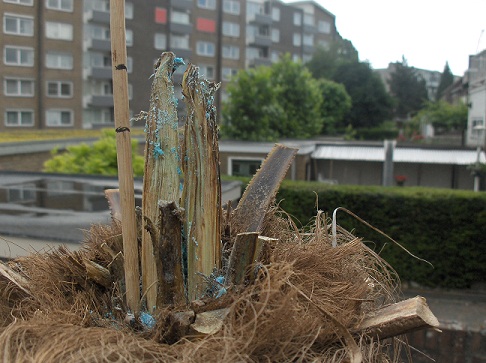 Dimi: ik heb je raad opgevolgd en de paraplu verwijderd... vind het wel nog wat eng aangezien er naast de speer veel vezels zitten die het zaakje vochtig houden. Als het gaat regenen doe ik de paraplu toch maar weer erboven. Ben als de dood dat het alsnog mis kan gaan!