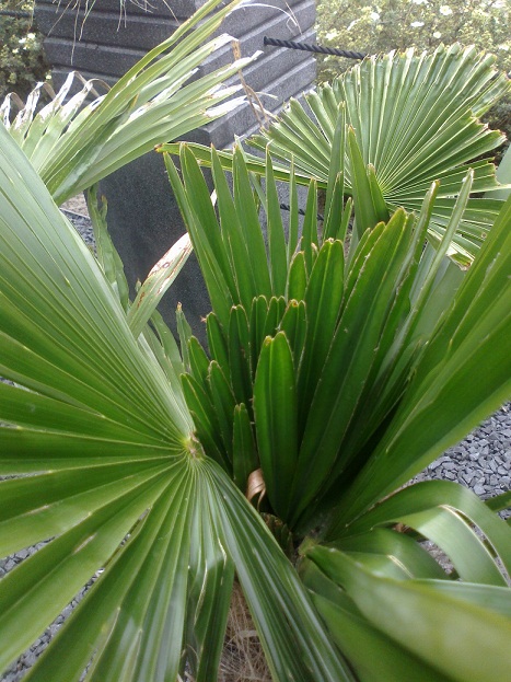 Zaten geen groene bladeren meer aan, nu komt de ene palm weer heel mooi op, terwijl de andere palm wel opkomt maar de speren niet vergenoeg uitkomen en vroeg opengaan.