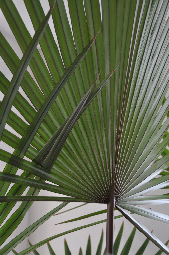 Ik ben pas sinds kort toegetreden tot dit forum en val dus middenin dit topic. Ik heb in het vorige huis veel ervaring opgedaan met diverse tropische palmsoorten als kamerplant. De soorten met wat harder blad zijn doorgaans het makkelijkst. Ik heb nu alleen nog een grote Latania lontaroides (rode Latan) in de woonkamer staan. De lichtcondities zijn binnenshuis verre van optimaal met als gevolg lange bladstelen. Desalniettemin is het toch een fraaie palm met z'n grote enigszins afhangende langhoudbare bladeren met rode nerf. Problemen kent deze soort nauwelijks. Overdag is de temperatuur 20-21 °C met 's nachts een minimum van 18. Luchtvochtigheid schommelt tussen 50 en 70%. De palm is nooit verpot en staat sinds de aanschaf in dezelfde rode klei.