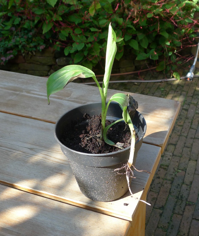 Maar toen kwam de volgende vraag...hoe komen die in godsnaam dan in die potten. Heb geen bananen planten gehad met vruchten en ik heb deze niet gezaaid.