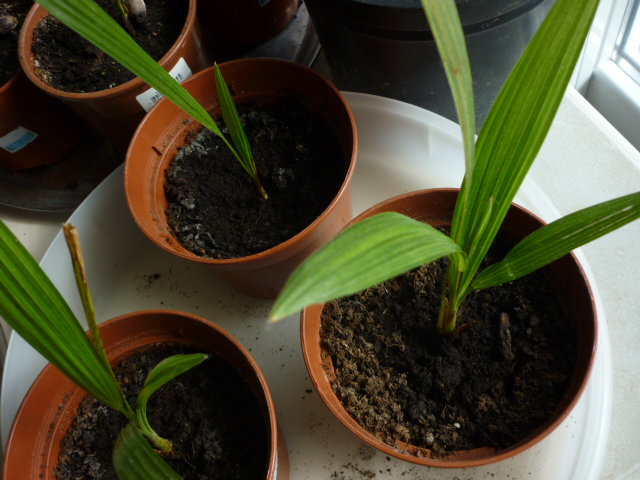 Jubaea chilensis heeft ook V-vormige bladeren. De zaden zijn redelijk groot maar, dacht ik, ronder van vorm.