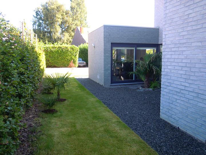Een foto van de tuin deels aangelegd in November 2010. De cypressen werden door mij als aardappelen geplant en zeer laat in het jaar. Amateur werk op zen best. Ondertussen zijn er twee dood.