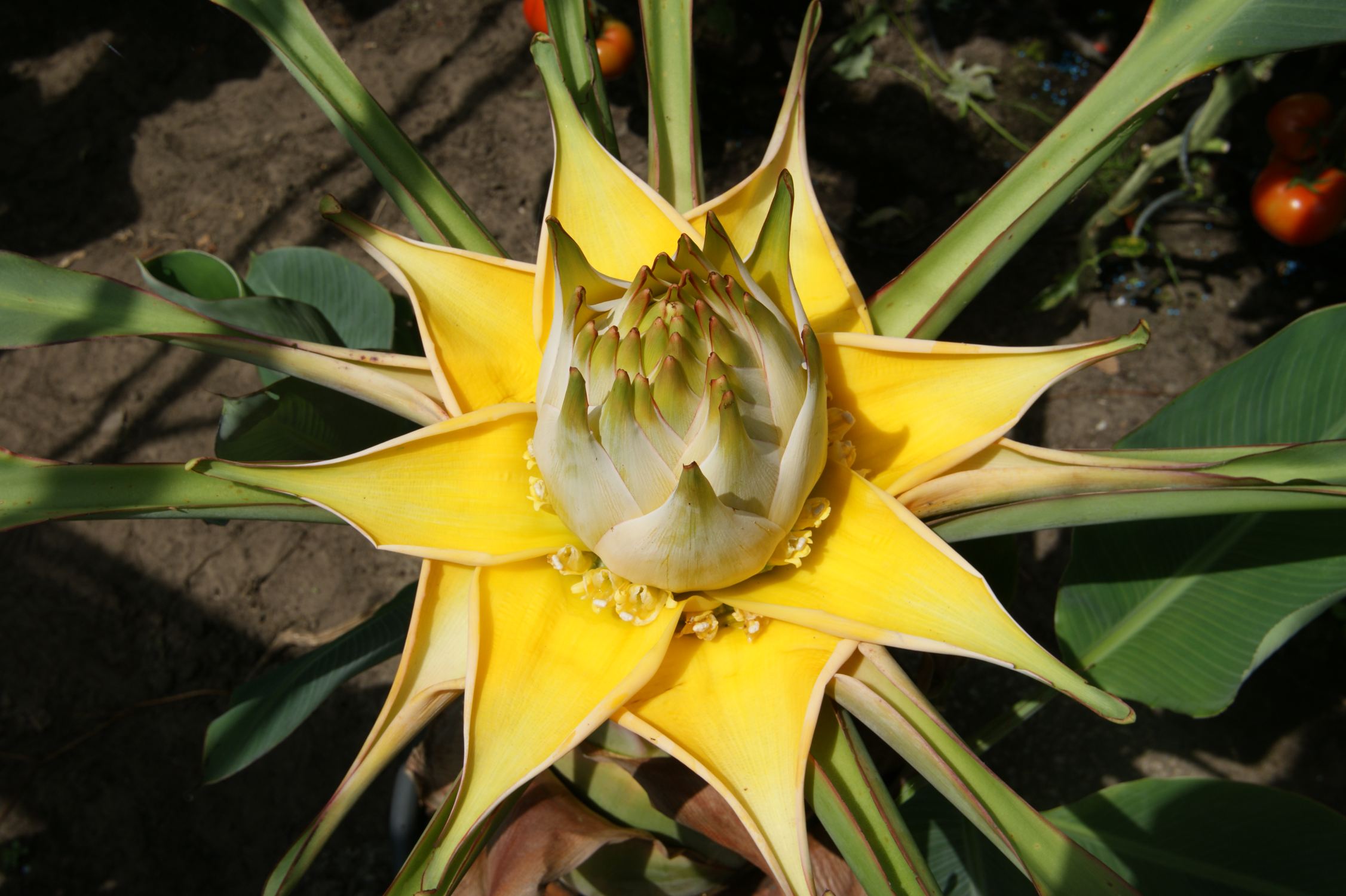 Ik was net enkele bananen in de kas aan het zetten toen ik iets zag wat volgens mij een bloemknop is.