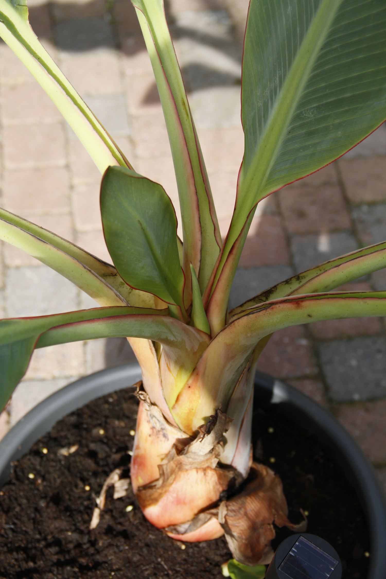 Ik was net enkele bananen in de kas aan het zetten toen ik iets zag wat volgens mij een bloemknop is.