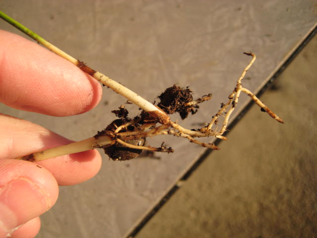 Kijken of er wortels aan de scheuten zitten is een onmogelijke opgave zonder al meteen wortels grof te beschadigen.